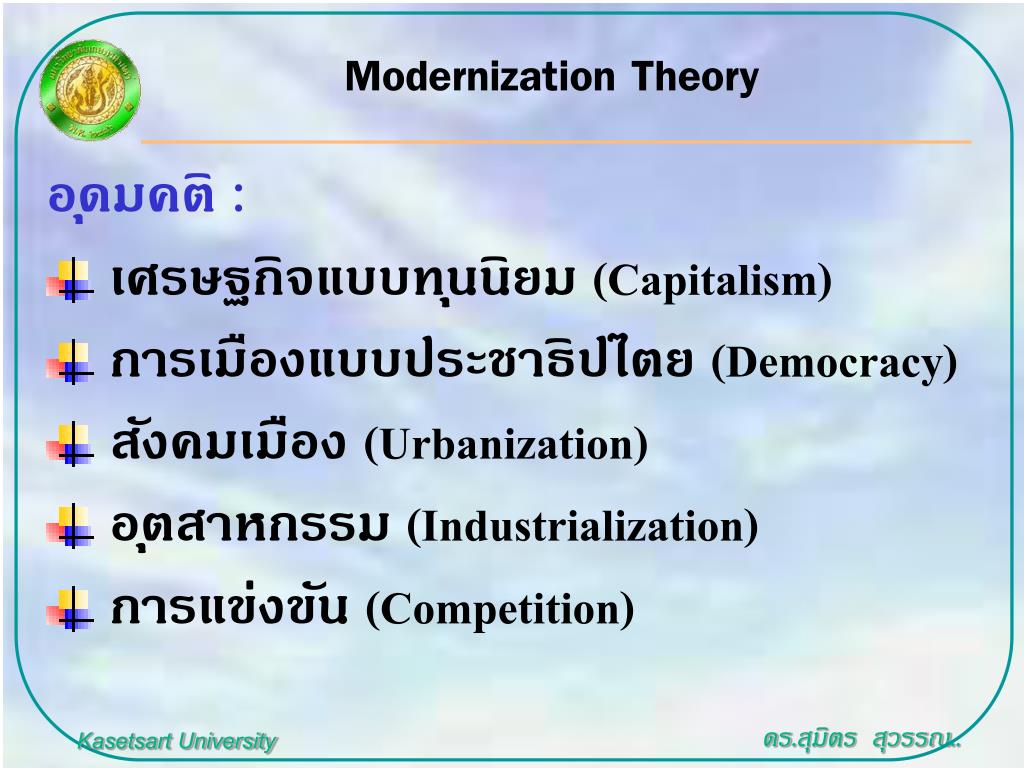 The process of modernization is viewed as a onetime historical process which was started by the industrial revolution in england and the political revolution. The item the production of modernization : Modernization theory arose from the notion that international mass communication could be used to spread the message of modernity and transfer the economic and political.